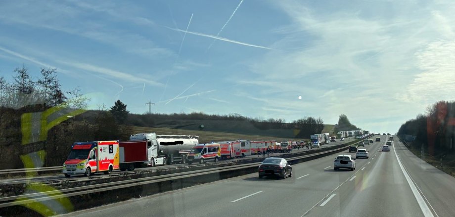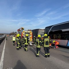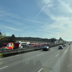 Am gestrigen Vormittag wurden unsere Einsatzkräfte zu einem Verkehrsunfall auf der A3 alarmiert. Drei LKW und ein Reisebus waren aufeinander aufgefahren.